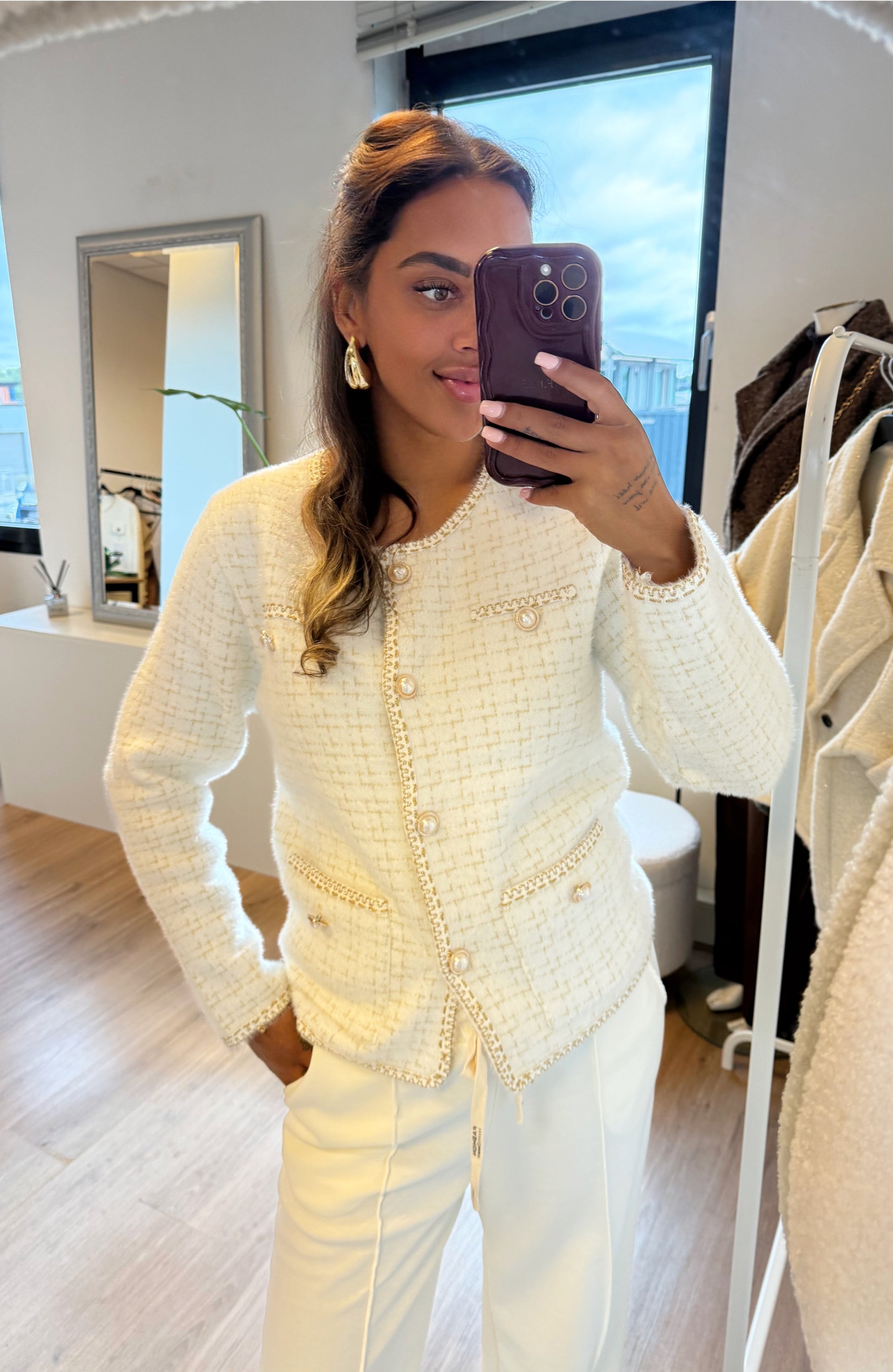 Dit beeldige vest draag je dicht als een truitje en straalt pure luxe uit. De mega zachte, dikke stof voelt zo fijn dat je er in geknuffeld wilt worden. Dankzij de subtiele gouden draad en de elegante parelknopen krijgt dit item een chique uitstraling die elke outfit naar een hoger niveau tilt.