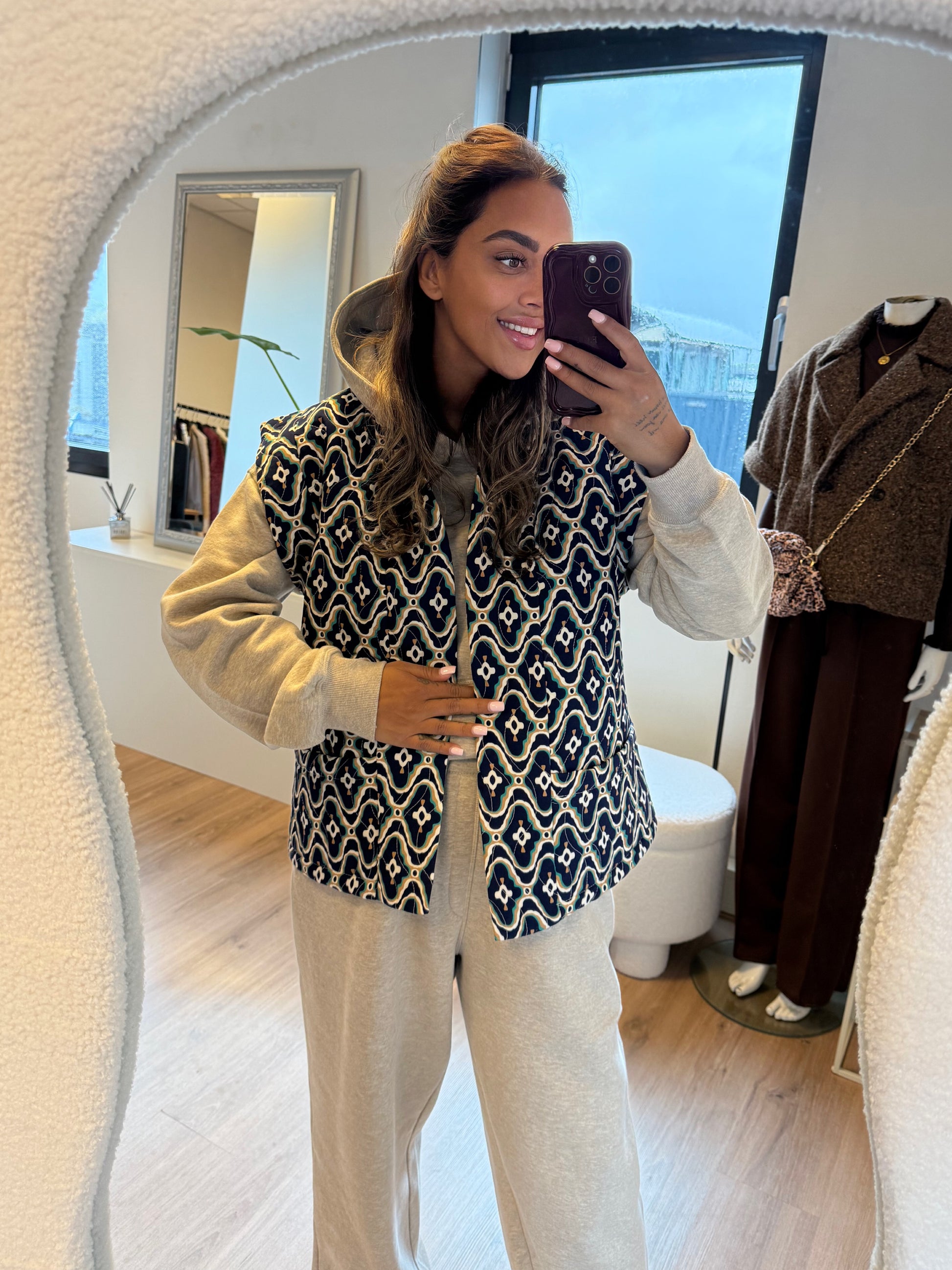 Gemaakt van luchtige maar stevige stoffen en met een fijne pasvorm, waardoor je 'm makkelijk over een blouse, basic shirt of zelfs je favoriete joggingset draagt. Of je nu casual gaat of net wat chiquer – dit gilet maakt het áf.