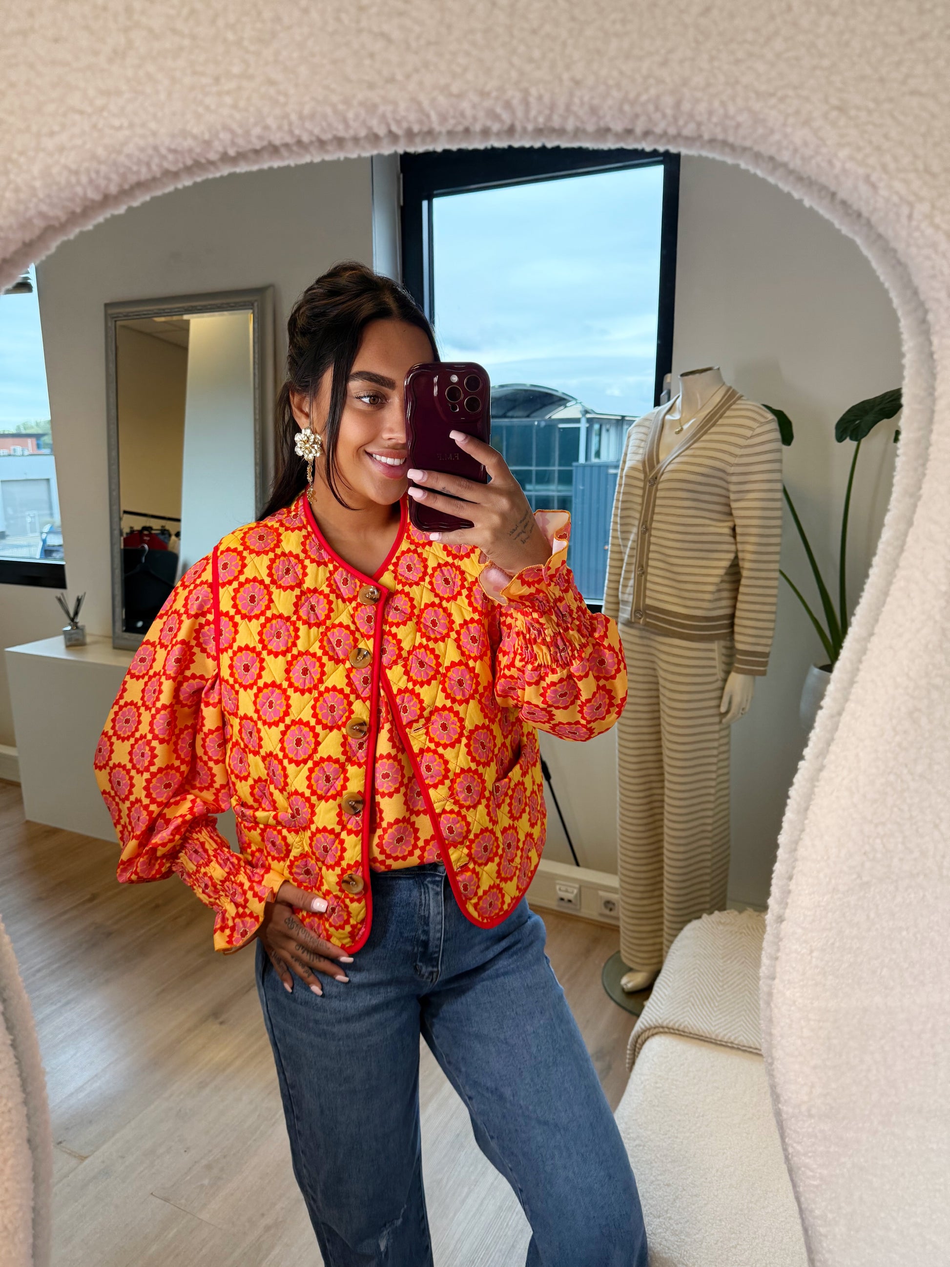 De Olivia Gilet in orange & red is het perfecte statement item voor jouw garderobe. Met dezelfde opvallende print als de Olivia Blouse creëer je eenvoudig een stijlvolle, opvallende look die helemaal in balans is. De gilet heeft functionele knopen en zakken aan de voorkant, wat zorgt voor een trendy maar ook praktisch ontwerp.