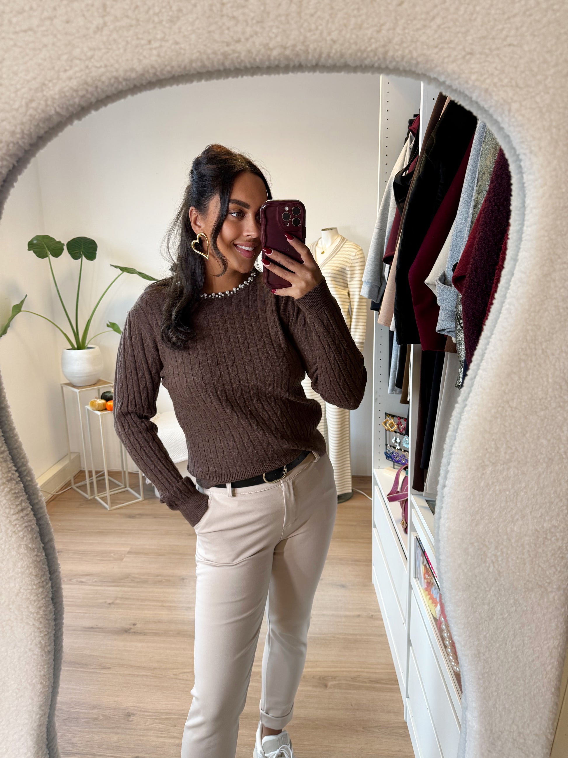 Draag de Pearl Braided Knit met een straight fit jeans voor een elegante everyday look, of combineer hem met een prachtige blazer voor een classy office vibe. Ook ideaal als layer piece in de koudere maanden – tijdloos, comfortabel en always stylish.