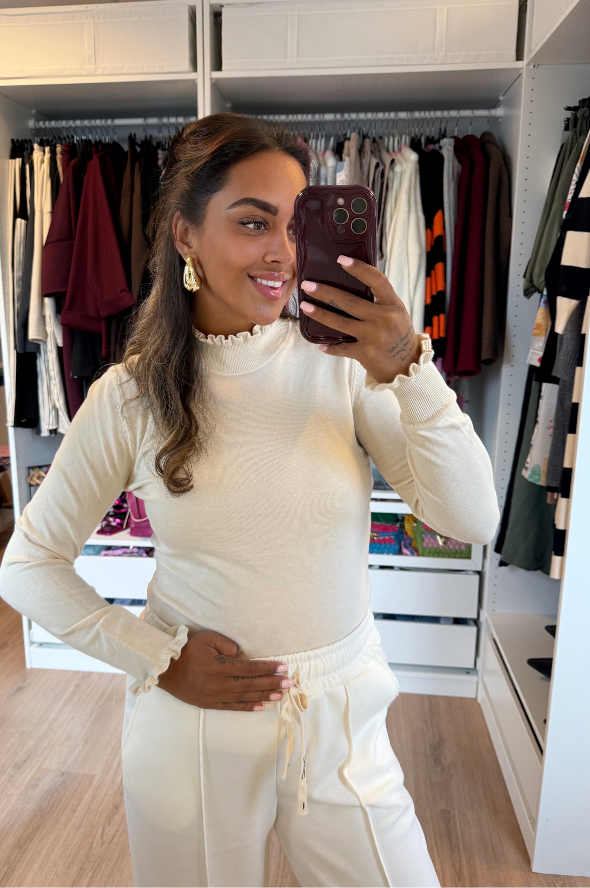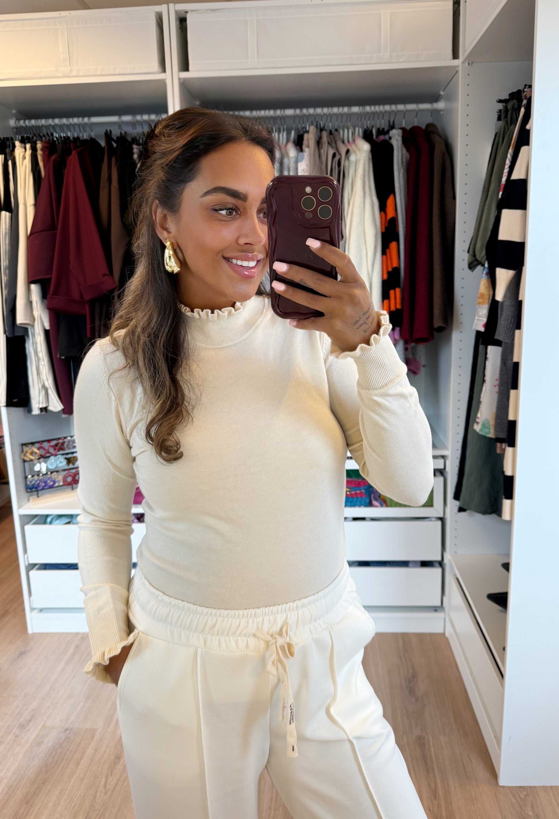 De Romy ruffle coltrui is dé perfecte basic met een speels en vrouwelijk detail. Deze stijlvolle coltrui is verkrijgbaar in beige, choco en zwart en is een echte musthave voor het najaar en de winter. Dankzij de ruffle details op de col en aan de uiteinden van de mouwen krijgt de trui een chique en trendy uitstraling.